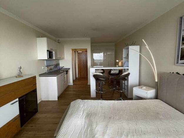 Objektbeschreibung ca. 35 m² Wohn-/Nutzfläche komplett möbliert Raumaufteilung Großer Wohn-Schlafraum, Badezimmer mit Dusche, Pantry