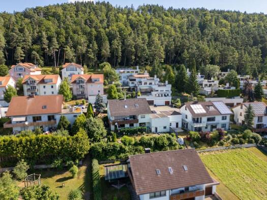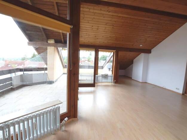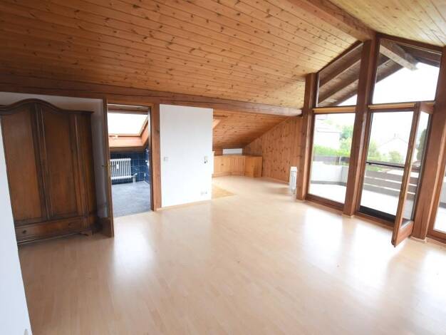 Die attraktive Maisonette liegt im 1. Obergeschoss und im Dachgeschoss eines Zweifamilienhauses am Waldrand des Ortes und bietet großzügiges und offenes Wohnen auf zwei Ebenen. Die offenen Balken und...