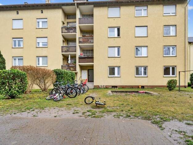 Die gut geschnittene 2-Zimmer-Wohnung befindet sich im Erdgeschoss ( Hochparterre ) eines Mehrfamilienhauses mit insgesamt 14 Wohnungen, das 1956 in der damals üblichen einfachen Siedlungsarchitektur...
