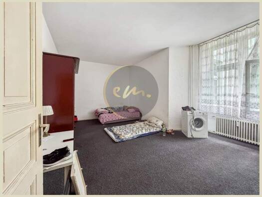 Die bezugsfreie, sanierungsbedürftige Erdgeschosswohnung präsentiert sich mit ca. 106 Quadratmeter Wohnfläche sehr geräumig. Sie bietet ein Gästebadezimmer direkt im Eingangsbereich, zwei große Schla...