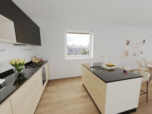 Willkommen in Ihrem neuen Zuhause über den Dächern von Königsdorf! Diese charmante Dachgeschosswohnung bietet rund 67 m² Wohnfläche, verteilt auf 3 Zimmer, Küche, Diele, Badezimmer, Gäste-WC und Abst...