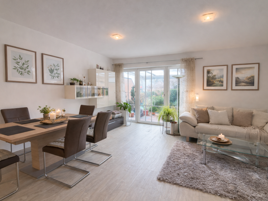 EINE WOHNUNG MIT VIELEN MÖGLICHKEITEN Familienglück mit Platz für alle, Gästezimmer oder mit einem separatem Home-Office um Wohnen und Arbeiten perfekt trennen - diese 3-Zimmer Gartenwohnung mit zwei...
