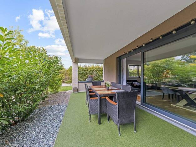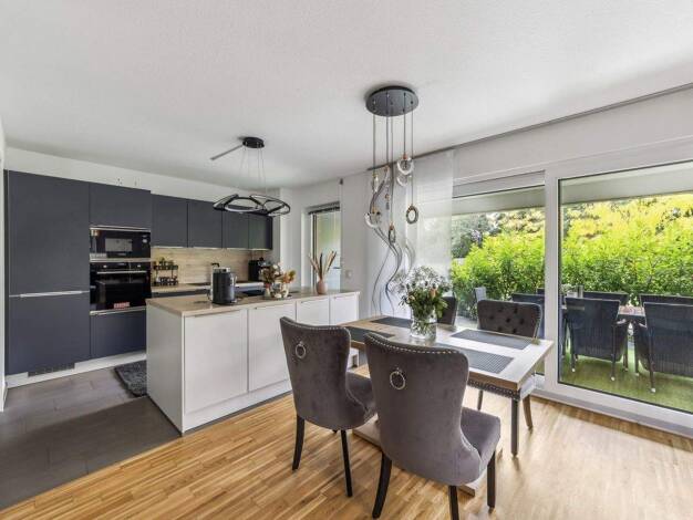 Die sehr gepflegte Wohnung ist geschmackvoll und hochwertig ausgestattet. Auf über ca. 101 m² Wohnfläche zzgl. Terrasse und privatem Gartenanteil versprüht diese Wohnung den Flair eines Hauses. Der W...