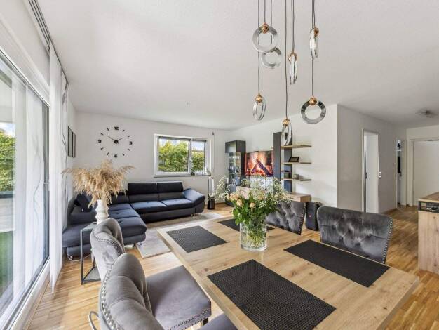 Die 3,5 Zimmer-Wohnung liegt im Dachgeschoss eines Mehrfamilienhauses mit sechs Wohneinheiten. Herzstück dieser hellen und lichtdurchfluteten Wohnung mit ca. 110 m² Wohnfläche ist das Wohn- und Esszi...
