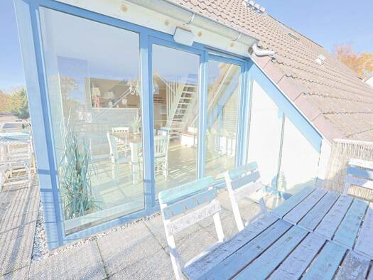 Großzügige Maisonettewohnung mit herrlichem Ostseeblick. 2 Etagen. Obergeschoss + Dachgeschoss. Wohn- und Nutzfläche inklusive Dachschrägen ca. 102 m². Großer Westbalkon. Einbauküche. 2 Bäder. Komple...