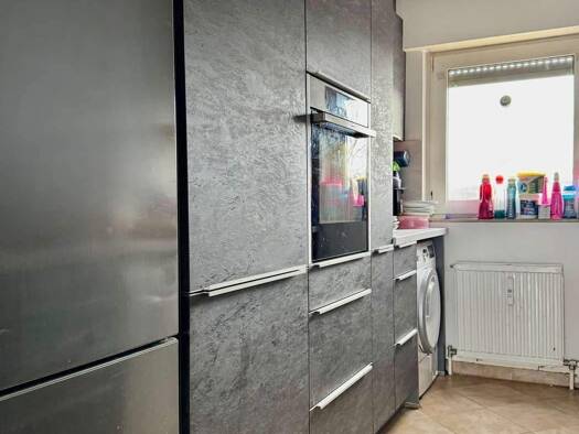 Die Wohnung überzeugt mit großzügigem Grundriss, drei Schlafzimmern und einem hellen Wohnzimmer mit Balkonzugang. Der große Balkon mit Blick ins Grüne lädt zum Entspannen ein. Eine funktionale Einbau...