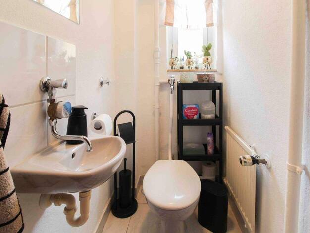 Helle, freundlich geschnittene Wohnung mit offenem Essbereich und Blick in die Küche. Der Wohnraum bietet Zugang zu einem zusätzlichen Zimmer, ideal als Büro oder Kinderzimmer. Das Bad wurde 2018 mod...