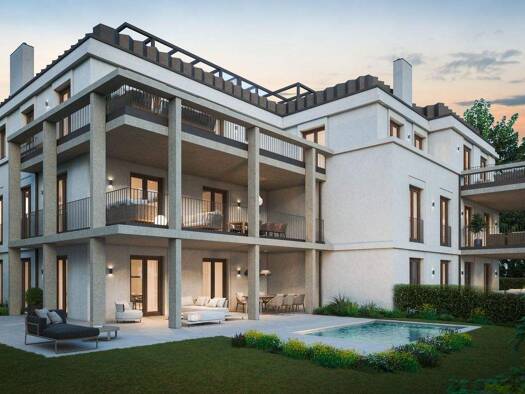 Insgesamt entstehen acht luxuriöse Wohneinheiten. Das Haus A mit sechs Eigentumswohnungen und das Haus B mit zwei Reihenhäusern im Einfamilienhauscharakter. Eine private Sackgasse führt Sie exklusiv ...