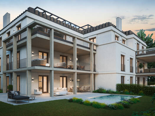 Insgesamt entstehen acht luxuriöse Wohneinheiten. Das Haus A mit sechs Eigentumswohnungen und das Haus B mit zwei Reihenhäusern im Einfamilienhauscharakter. Eine private Sackgasse führt Sie exklusiv ...
