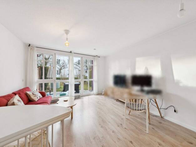 Die sehr gepflegte, gemütliche 2 Zimmerwohnung mit Terrasse und herrlichem Gartenanteil in Südausrichtung befindet sich in einer kleinen Wohnanlage. Die ruhige Lage ist geprägt durch Einfamilien-, Do...