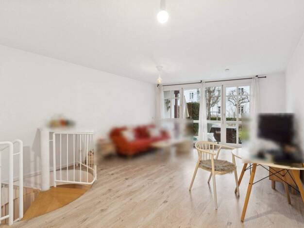 Diese charmante 2-Zimmer-Maisonettewohnung verbindet ein modernes Wohngefühl mit dem seltenen Extra eines privaten Außenbereichs. Herzstück der Wohnung ist der helle Wohnbereich mit großzügiger Fenst...
