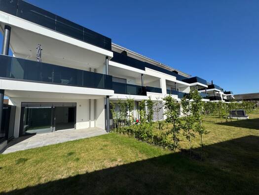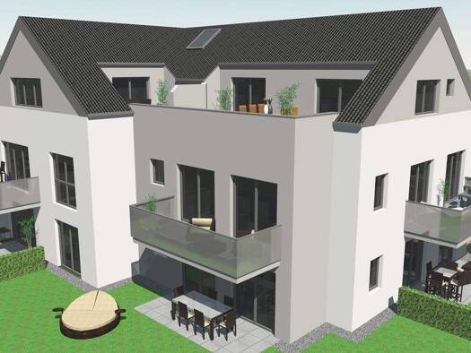 Objektbeschreibung Genießen Sie die Eleganz hochmoderner Architektur: Sonnige Balkone und großzügige Gärten schmiegen sich in das klare Design mit eleganter Fassade und charakteristischen Glasflächen...