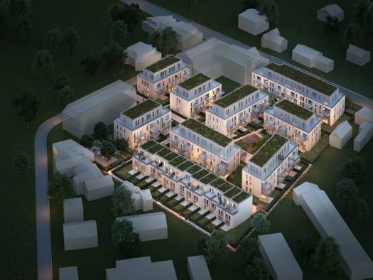WILLKOMMEN IN DEN FUCHSGÄRTEN Hier entsteht ein charmantes Quartier mit dreizehn Stadthäusern und acht Mehrfamilienhäusern, das mit seiner Neubauqualität, seinen modernen Grundrissen und seinem Komfo...