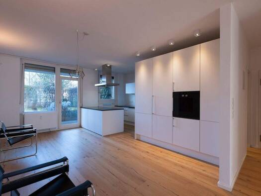 Diese außergewöhnliche Erdgeschosswohnung vereint den Komfort einer modernen Eigentumswohnung mit dem Wohngefühl eines eigenen Hauses. Auf ca. 115 m² Wohnfläche und mit einem rund 200 m² großen, priv...