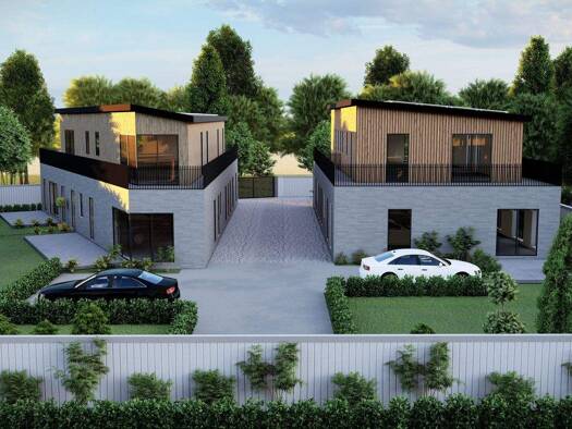 Bei dem Bauvorhaben handelt es sich um vier Doppelhaushälften mit jeweils zwei Wohneinheiten. Die Gebäude werden in massiver Bauweise errichtet und erhalten ein modernes Pultdach, das sowohl architek...
