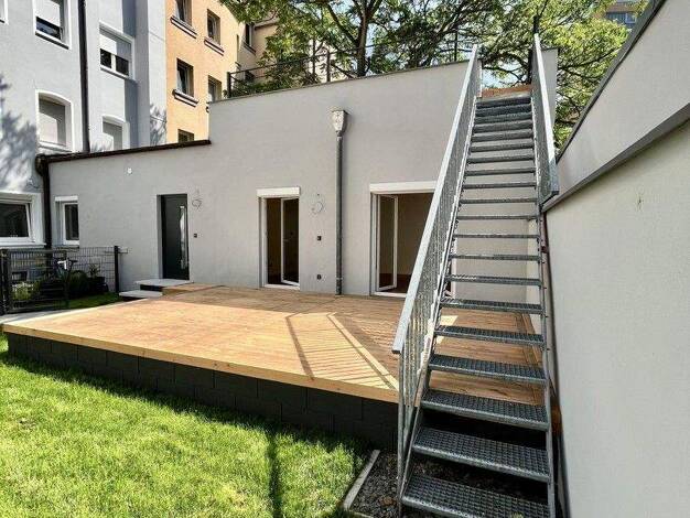 Sanierte 2-Zimmer-Wohnung * Ca. 72m² Wohnfläche (46m² Wohnfläche im Gebäude / 26m² Terrassen) * Frisch saniert - Erstbezug nach Sanierung * Im ruhigen Innenhof gelegen * Eigene Terrasse mit angrenzen...