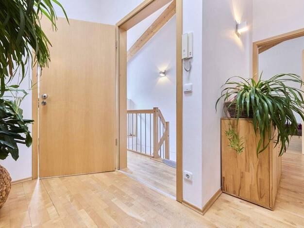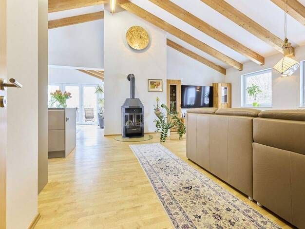 Diese stilvolle Maisonette-Dachgeschosswohnung mit Spitzboden und herrlichem Seeblick vereint gemütliches Wohnen mit modernem Komfort auf 80 m2 und traumhafter Lage am Ammersee. Über eine elegante We...