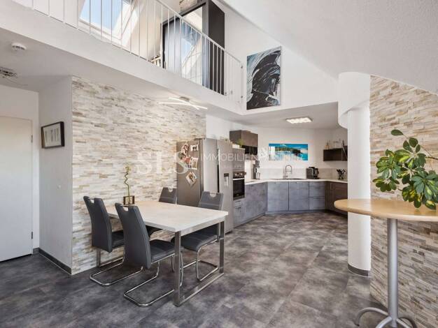 Diese stilvolle Maisonette-Wohnung vereint modernes Wohnen mit einem besonderen Raumgefühl auf zwei Ebenen. Die klar strukturierte Aufteilung schafft eine harmonische Verbindung aus Offenheit und Pri...