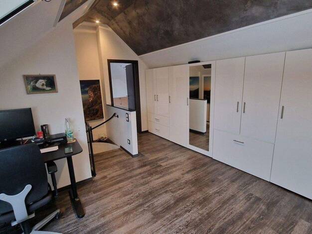 Diese Dachgeschosswohnung besticht durch eine durchdachte Raumaufteilung und zahlreiche Annehmlichkeiten. Beim Betreten der Wohnung empfängt Sie ein einladender Flur mit praktischem Einbauschrank. Da...