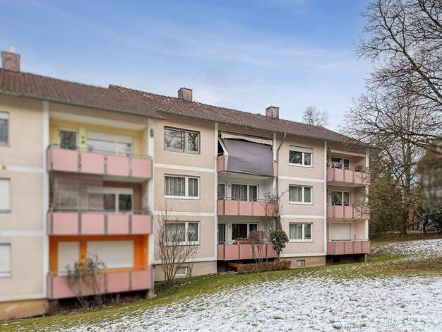 Helle 3,5-Zimmer-Wohnung mit 2 Balkonen, TG - Stellplatz und Fahrstuhl Diese ansprechende 3,5-Zimmer-Etagenwohnung befindet sich in einem gepflegten Mehrfamilienhaus aus dem Jahr 1983. Mit einer Wohn...