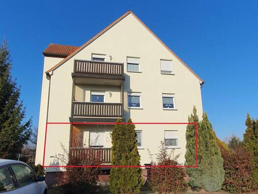 Kurzbeschreibung ETW in ruhiger Lage mit unverbaubarem Blick Objekt Verkauft wird eine 3-Raum-Eigentumswohnung im 2. Obergeschoss eines im Jahre 1994 erbauten Mehrfamilienhauses in ruhiger Lage am Ra...