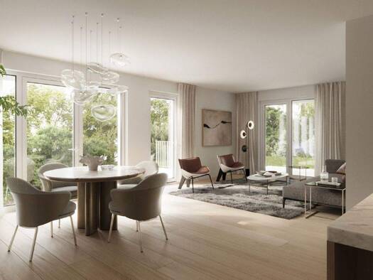 Die im modernen Stil konzipierte Wohnanlage bietet großzügiges Wohnen in hellen, lichtdurchfluteten Räumen. Bei der Detailplanung wurde besonderes Augenmerk auf eine harmonische Ausgewogenheit der a...