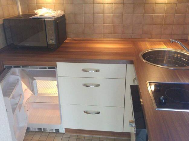 Die Wohnung ist ausgestattet mit Teppichböden, Fliesen in den Nasszellen, Dusche/WC, Küchenzeile mit Spüle, 2-Plattenherd, Kühlschrank und Ober- und Unterschränke. Im Weiteren ist ein nach Süden ausg...