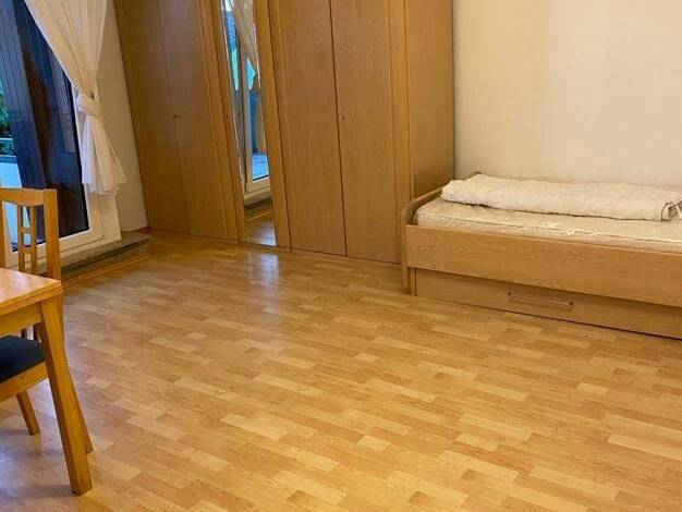 Sehr ruhige und gepflegte Eigentumswohnung. Nicht vermietet. Balkon mit Blick zum Garten. Markise. Wohnbereich und abteilbarer Schlafbereich mit Einbauschrank. Weitere Möblierung kann miterworben wer...