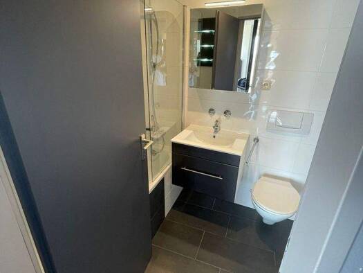 - 2. OG mit Aufzug - Massive Bauweise - Öl-Zentralheizung - Laminatboden im Zimmer - Badezimmer mit Dusche, WC und Waschbecken - Inkl. EBK und Möblierung - Zzlg. TG-Stellplatz 15.000,- Euro