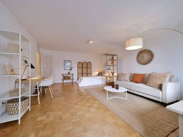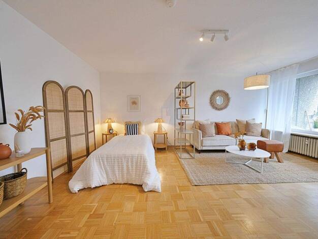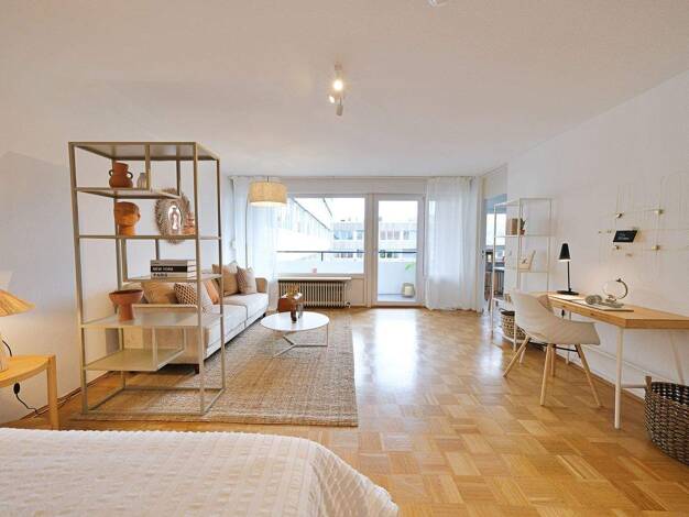 Jung und modern präsentiert sich dieses wunderschöne Apartment. Es ist komplett mit hochwertigen Möbeln ausgestattet: z. B. Einbauküche, Französischem Bett, Schiebetürenschrank, Esstisch, Schreibtisc...
