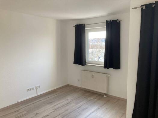 Die leer stehende, frisch renovierte Wohnung befindet sich im 4. Obergeschoss einer größeren Wohnanlage. Über den Eingangsbereich mit integrierter Kochnische betreten Sie die Wohnung. Rechts vom Flur...