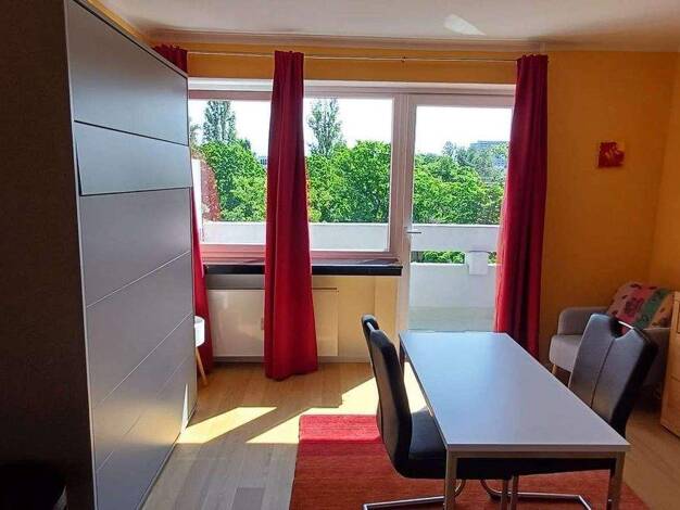 Die Einzimmerwohnung mit Süd-Balkon wurde 2018 komplett renoviert, gestrichen und mit einem neuen Laminatboden und neuen Möbeln versehen. Der kleine, sonnige Balkon ist ruhig zum grünen Hinterhof gel...