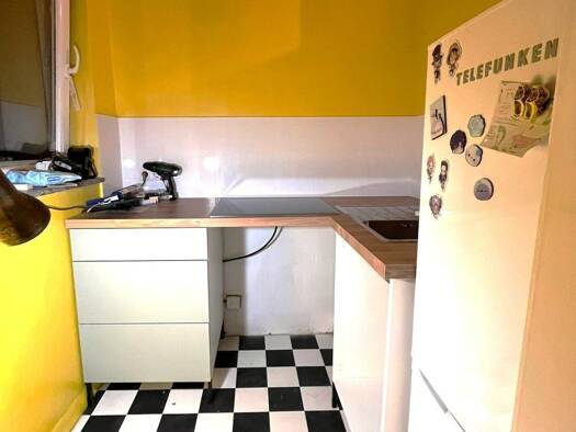 Die hier angebotene 1-Zimmer-Wohnung befindet sich im 4. OG eines Mehrfamilienhauses und lässt sich bequem mit dem Aufzug erreichen. Sie kommen herein und können linkerhand in das innenliegende, weiß...