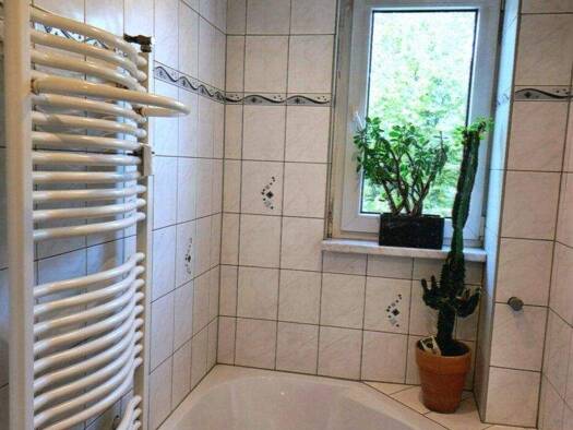 Dieses schicke Gebäude wurde ca. 1952 in Massivbauweise errichtet und verfügt über fünf Etagen. Unsere Wohnung befindet sich im Hochparterre und ist somit auch für Personengruppen mit mobiler Einschr...