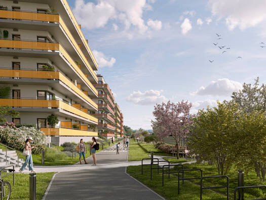 Für BUWOG AM NEUEN PARK wurde ein Ensemble aus insgesamt fünf Punktgebäuden entworfen: Vier siebengeschossige Gebäude und als markanten Akzent ein elfgeschossiges Hochhaus, welches den urbanen Charak...