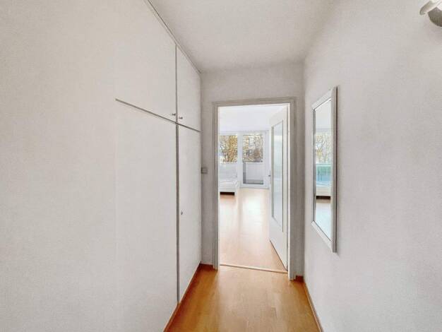 Bequem mit dem Lift erreichen Sie das im 7. Obergeschoß gelegene Appartement. Das Gebäude wurde 1972 in massiver Bauweise errichtet und laufend instand gehalten. Der Dielenbereich bietet Platz für ei...