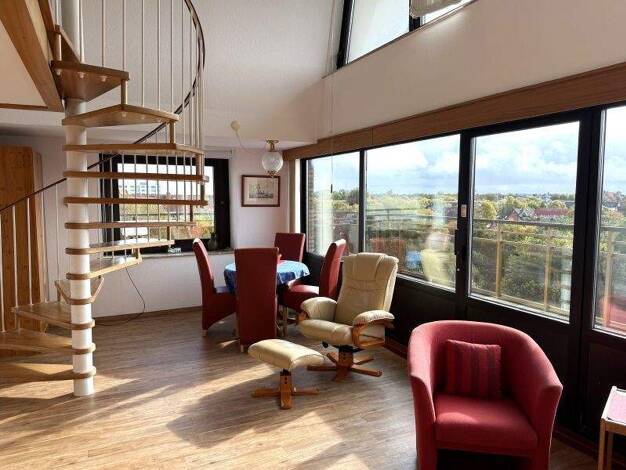 Diese außergewöhnliche Penthouse-Maisonettewohnung bietet eine seltene Gelegenheit, exklusives Wohnen in begehrter Lage von Cuxhaven-Döse zu realisieren. Über den Flur gelangen Sie in den großzügigen...