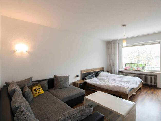 Zum Verkauf steht eine helle 1-Zimmer-Eigentumswohnung mit 45 pm Wohnfläche in einem gepflegtem Mehrfamilienhaus, mit neun Einheiten, aus dem Baujahr 1959. Der großzügige Wohnraum befindet sich im Er...