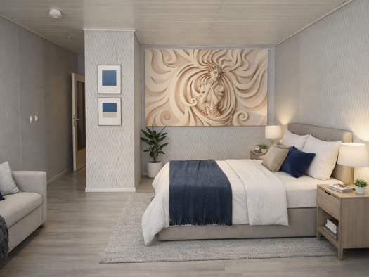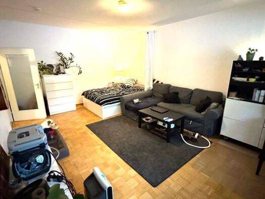 Beim Betreten der Wohnung im Untergeschoss gelangen Sie direkt in den offenen Wohn-, Koch-, Ess- und Schlafbereich. Dieser Raum bietet viele Möglichkeiten zur individuellen Gestaltung und wirkt trotz...
