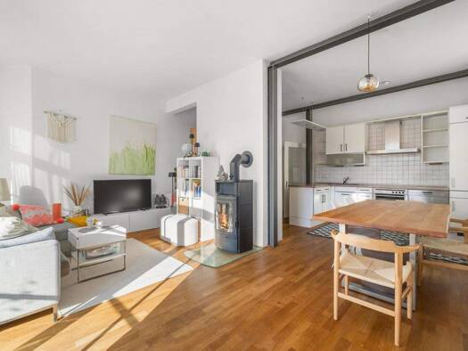 In diesem Gebäude der Jahrhundertwende wurde erst 2011 das Dachgeschoss zum Wohnraum ausgebaut. Hierfür wurde auch eine Süd-Loggia integriert. Der Loft-artige Grundriß der Wohnung, sprich ein offener...