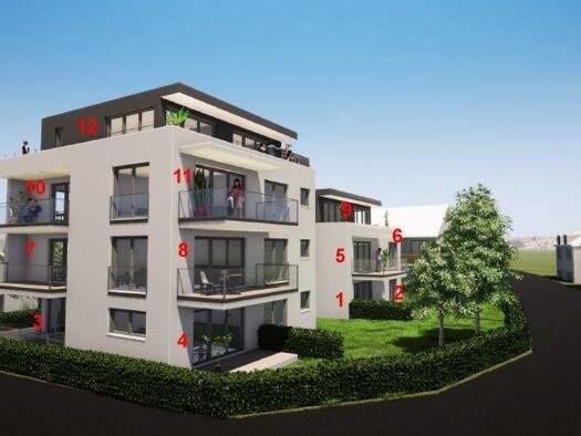 Das Mehrfamilienhaus mit 6 Neubau-Wohnungen hat verschiedene Wohnungsgrößen mit 2 1/2 Zimmer, 3 1/2 Zimmer und 5 1/2 Zimmern und Wohnflächen von ca. 82 bis 220 m². Die großzügigen Terrassen im Erdges...