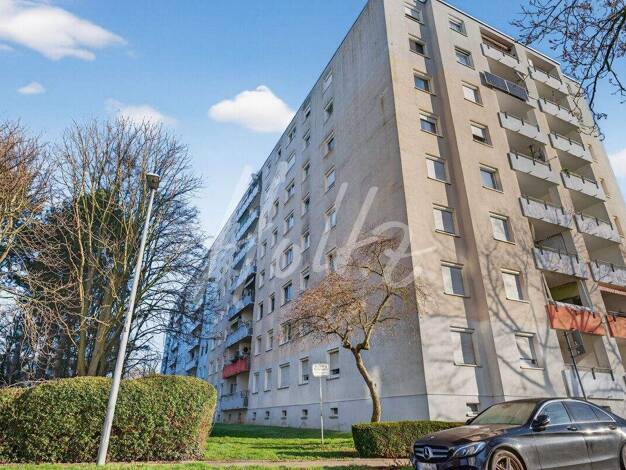 Die 2-Zi-Wohnung befindet sich im EG des 7-geschossigen sogenannten "Hügelhauses", Bj. 1973. Mit insgesamt 75 Wohnungen ist es weithin sichtbar. Es ist eines von drei Hügelhäusern. Das Haus vermittel...