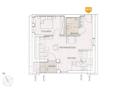 W19 - Hutmachergiebel: Die Zwei-Zimmer-Wohnung mit herrlicher Aussicht überzeugt durch ihre kompakte Raumaufteilung auf ca. 57m². Über eine Diele mit praktischer Nische für eine Garderobe erschließt ...