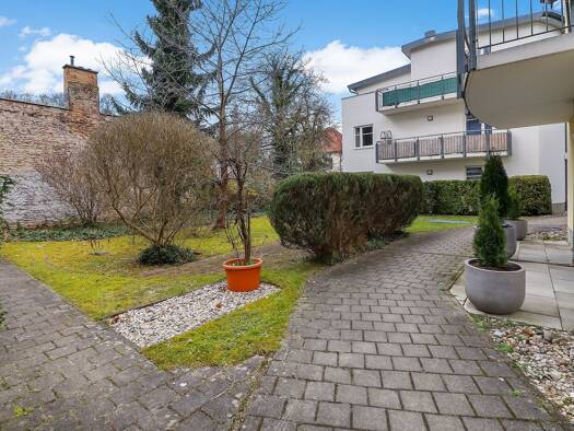Die Wohnung verfügt über einen eigenen Privatgarten (57m²) mit nord-westlicher Ausrichtung. Das äußere Erscheinungsbild der Stadtvillen ist klassisch modern gestaltet. Mit ihren geradlinigen Formen u...