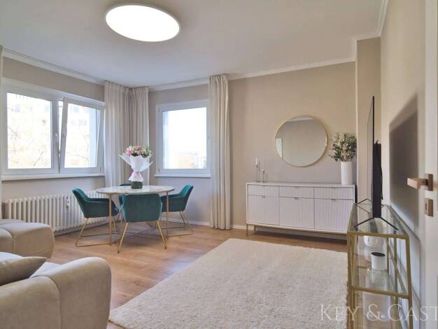 Diese äußerst elegante Wohnung erfreut mit einer exzellenten, 2022 umfassend und fachkundig ausgeführten Sanierung. Resultat ist ein sehr stilvolles Interieur, angefangen mit verspiegelten Türen, akz...