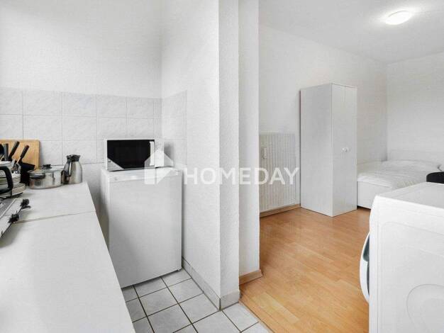 Diese charmante Singlewohnung auf der 1. Obergeschoss-Ebene verbindet durchdachte Raumaufteilung und zeitlose Eleganz. Bereits der einladende Flur empfängt Sie mit hellen Wänden und hochwertigem Bode...