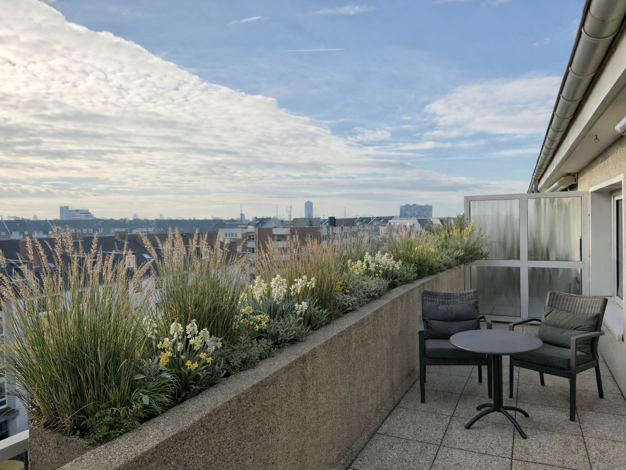 Dieses gut geschnittene Apartment im 6. Obergeschoss eines äußerst gepflegten Mehrfamilienhauses überzeugt durch seine herrliche Dachterrasse über den Dächern von Derendorf und eine gelungene Kombina...