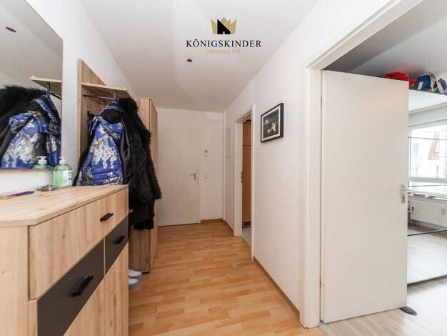 Entdecken Sie nachhaltigen Komfort und durchdachte Raumgestaltung in Ihrer neuen Wohnung. Betreten Sie Ihr neues Zuhause durch den einladenden Flur, der Sie direkt in den Wohnbereich führt. Hier vere...