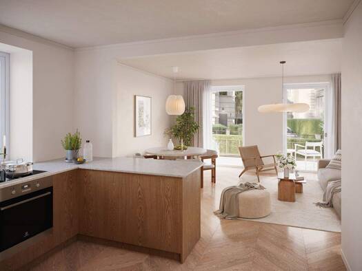 Diese außergewöhnliche 2-Zimmer-Wohnung befindet sich im 4. Obergeschoss eines prachtvollen Jugendstilgebäudes aus dem Jahr 1900 und vereint historischen Glanz mit modernstem Wohnkomfort auf großzügi...