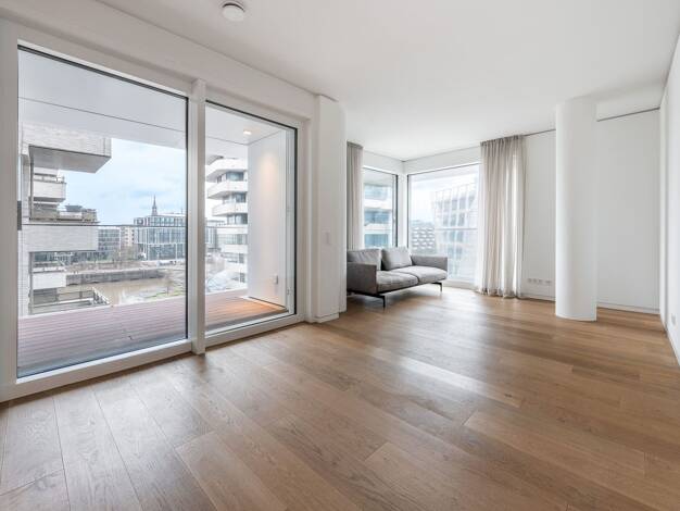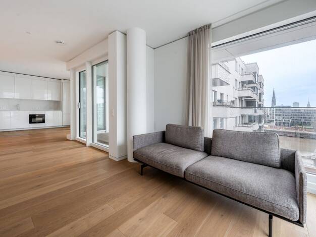 Das Penthouse besticht durch seine imposanten Blickachsen auf die Elbe, den Sandtorhafen sowie die Elbphilharmonie. Ein weiteres Highlight ist die exklusive alleinlage auf der Endetage.